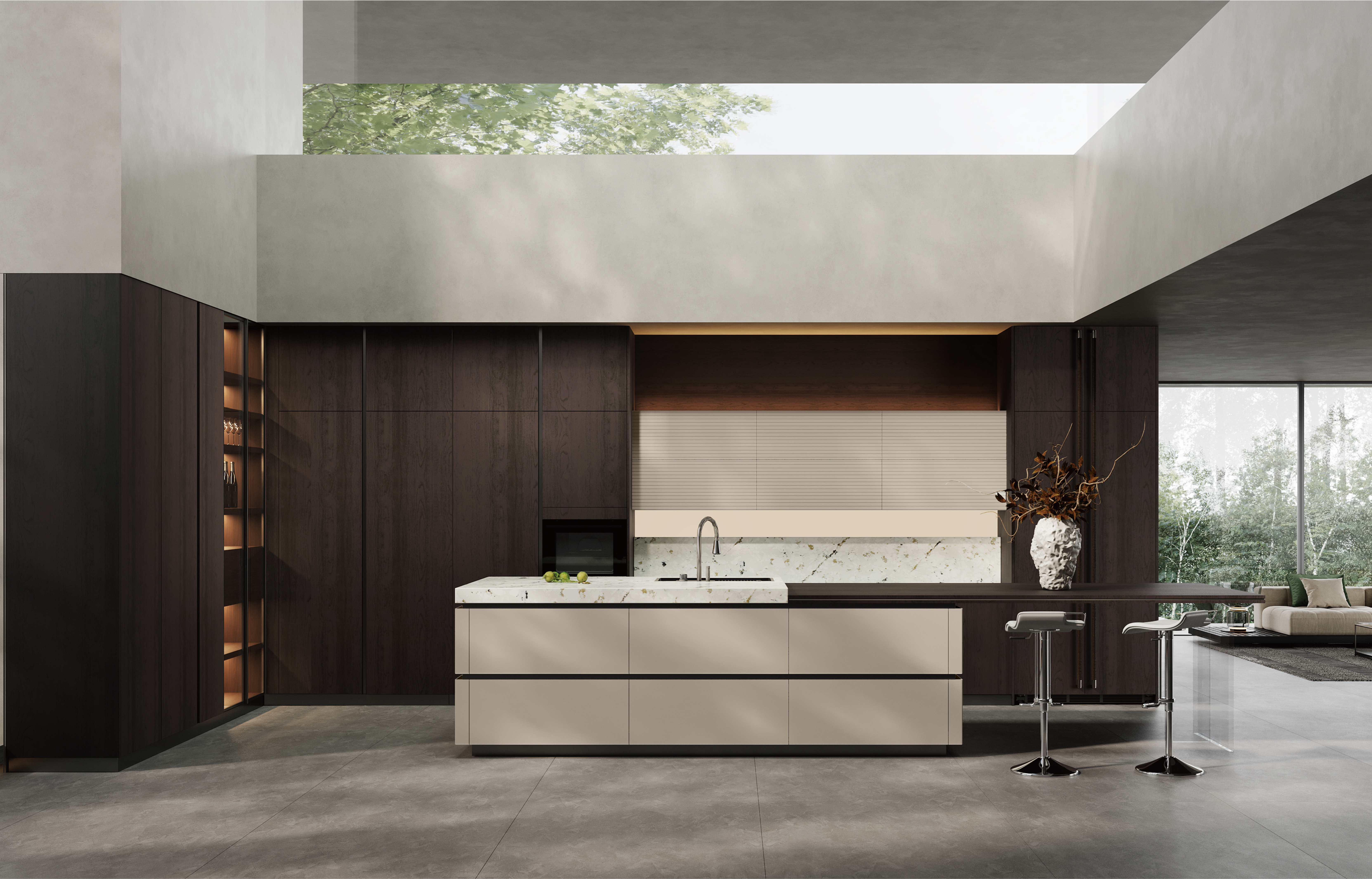 通过亿博电竞厨柜量体裁柜,定制出适合主厨下厨的烹饪区和洗涤区的舒适高度。